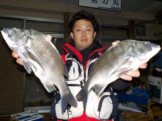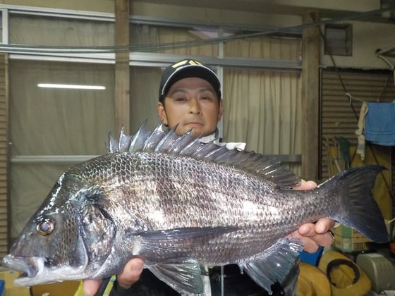 12月24日 磯釣りで緒方さん 良型チヌ45.5cmを頭に2匹