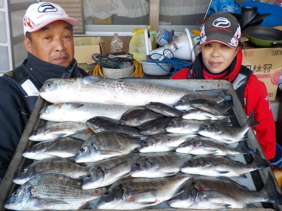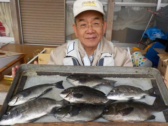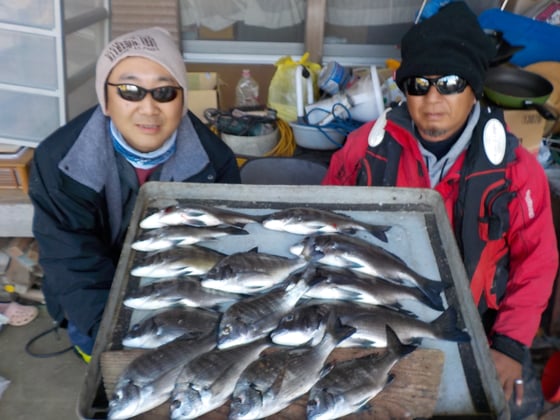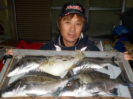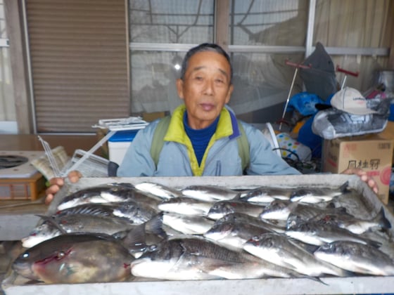12月23日 ダゴチン釣りで杉本さん チヌ40cmを頭に21匹 クロ、カワハギ