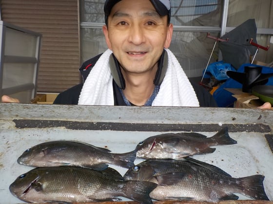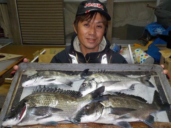 12月3日 磯釣りで池田さん チヌ37cmを頭に3匹 タイ4匹