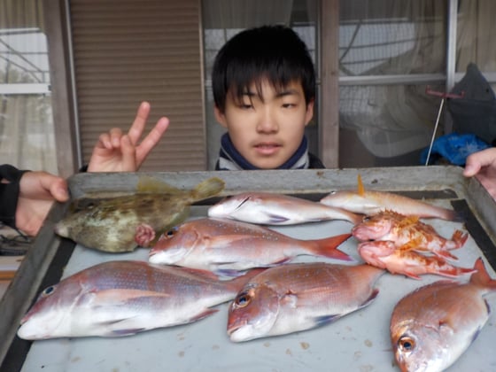 タイ12匹 ガラカブ7匹 ベラ3匹 イラ2匹 カワハギ1匹