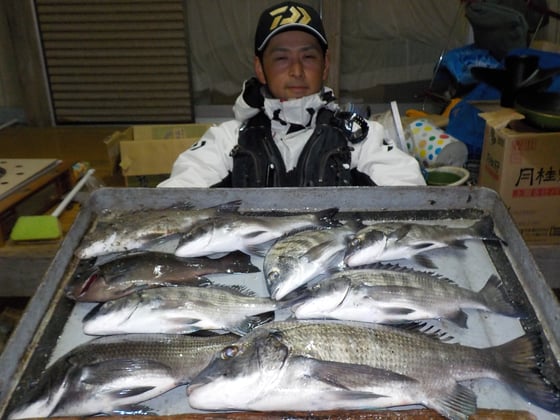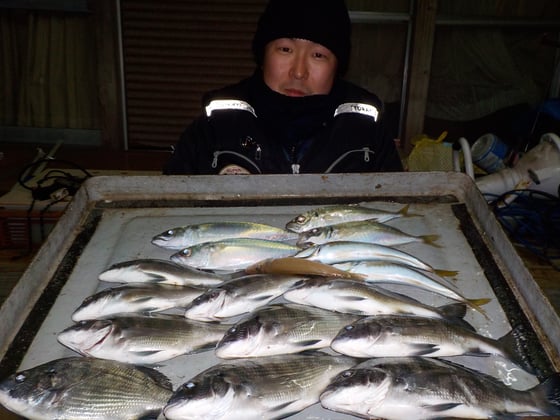 12月3日 ボート釣りで陣内さん クロ9匹