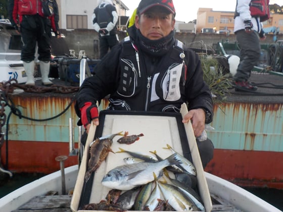 12月18日 船外機付きレンタルボートで川上さん マダイ6匹
