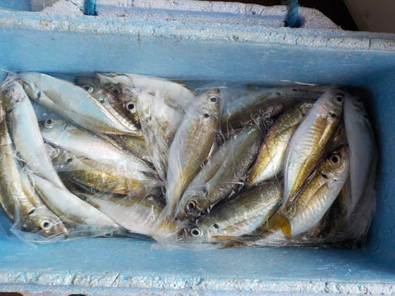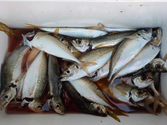 6月16日 サビキ釣りで陣内さん アジ20㎝を35匹