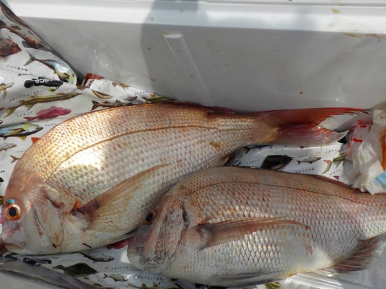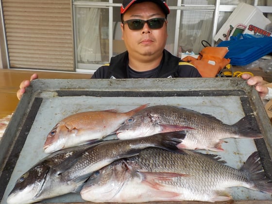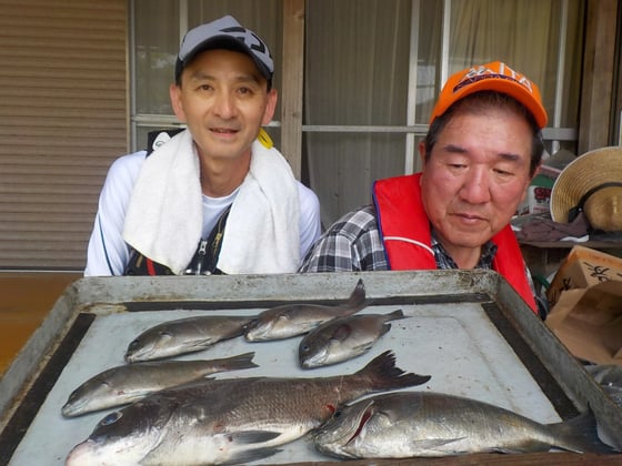 6月1日 船外機付きレンタルボートで佐々木さん タイ45㎝を頭に2匹