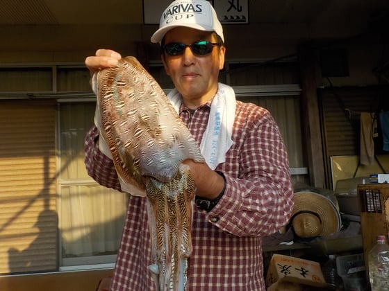6月21日 磯釣りで児玉さん 紋甲イカ2K弱