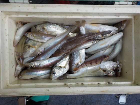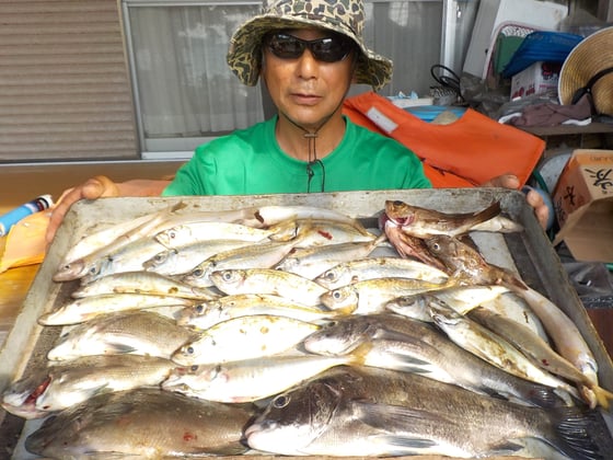 6月1日 ボート釣りで平木さん キス76匹 トラギス4匹 コチ、グチ、ベラ