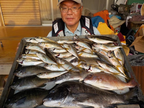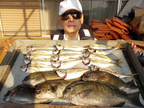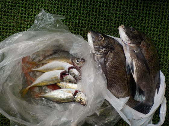 チヌ1匹 クロ12匹 アジ11匹 ガラカブ3匹 メバル2匹