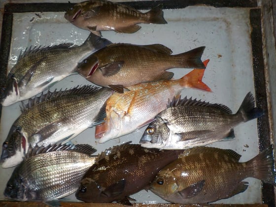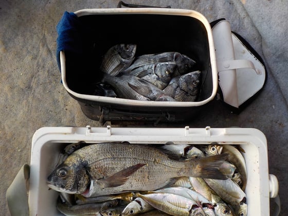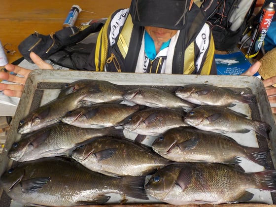 チヌ44㎝を頭に3匹 クロ29㎝を頭に11匹 タイ2匹