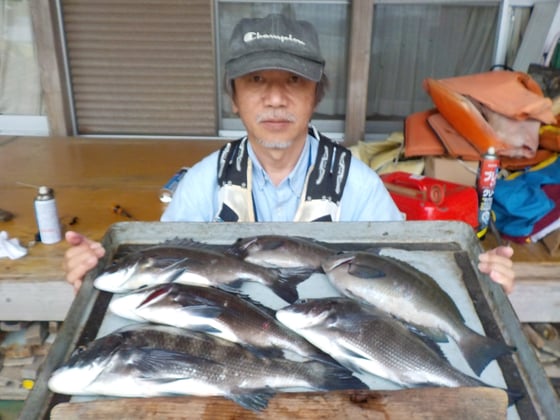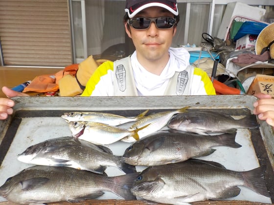 チヌ44㎝ クロ3匹 タイ1匹 アジ20㎝オーバー35匹
