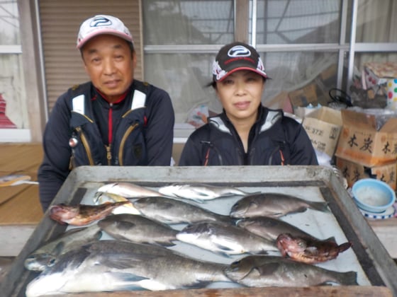 良型チヌ45㎝を頭に3匹 クロ6匹 ガラカブ、アジ、タイ