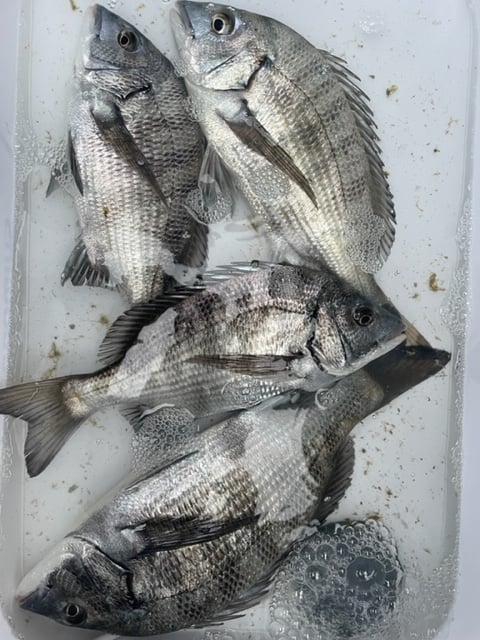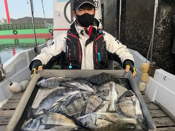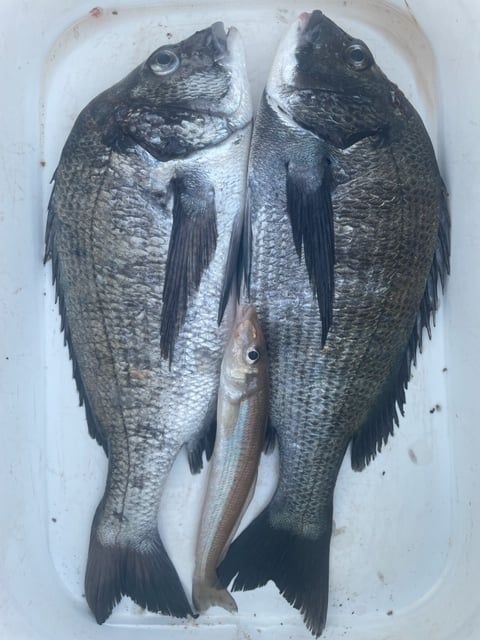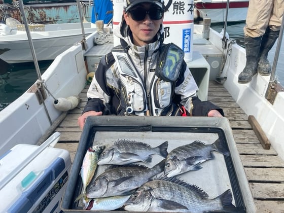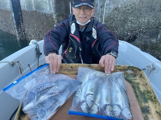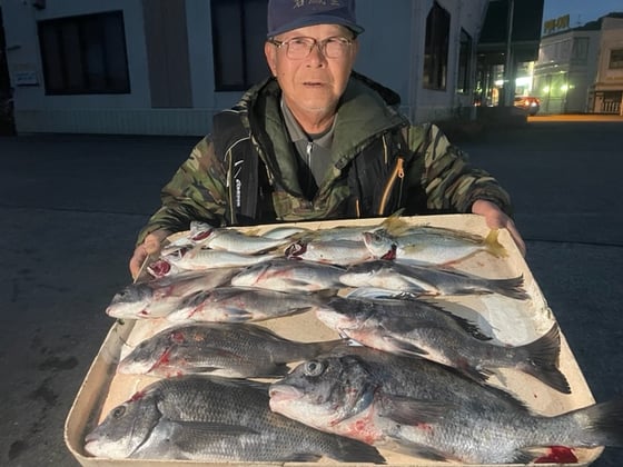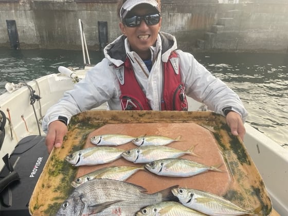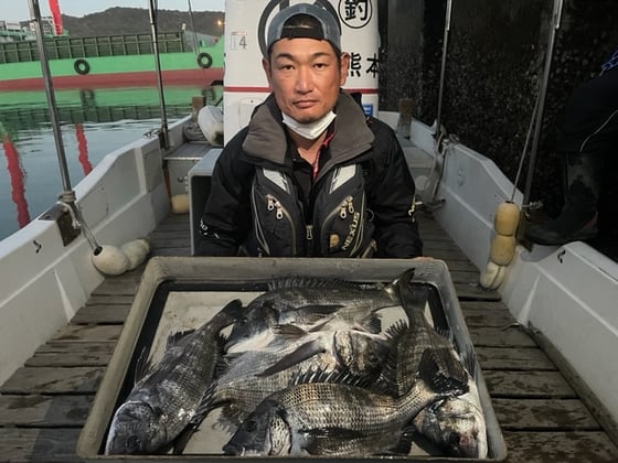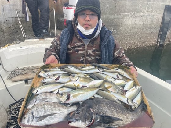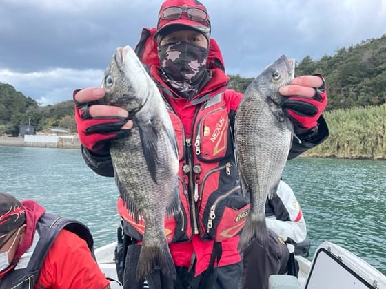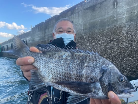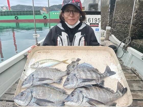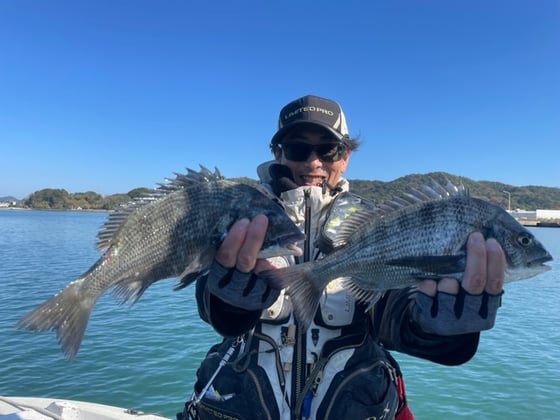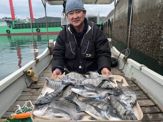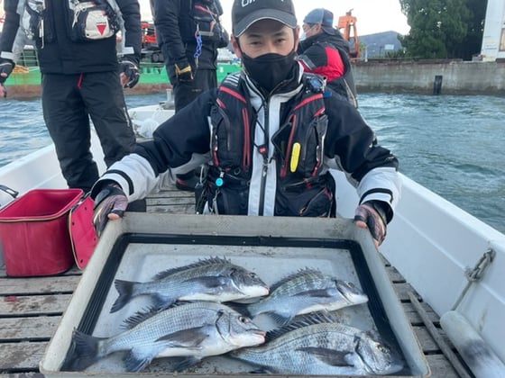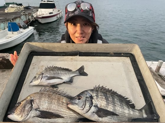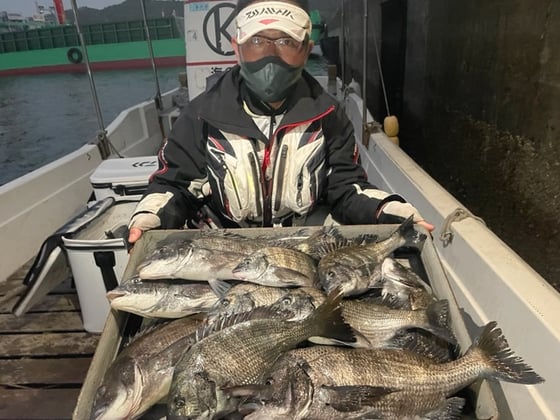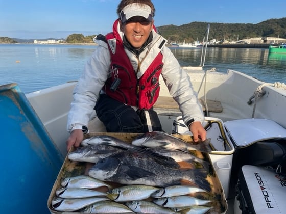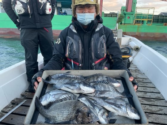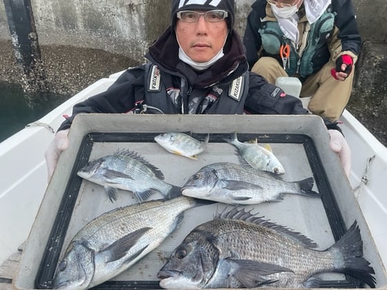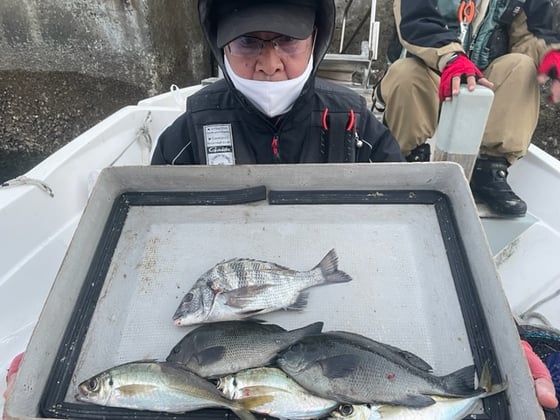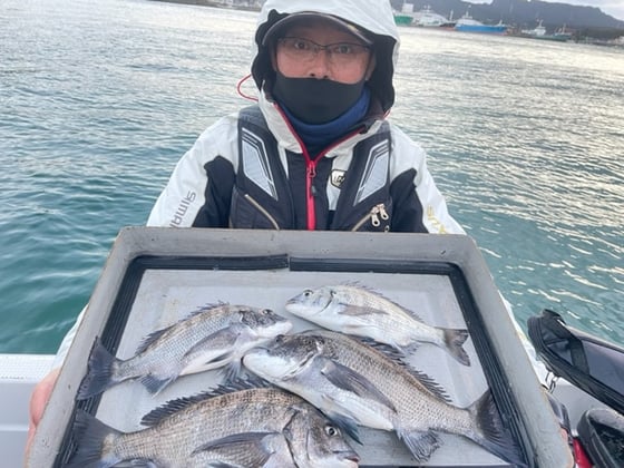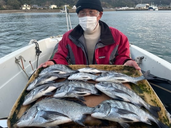 12月9日 ボート釣りで陣内さん チヌ3匹 クロ3匹 アジ8匹