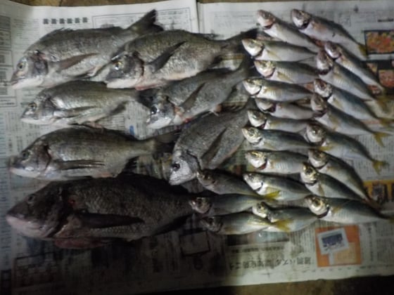 12月24日 磯釣りで遠藤さん タイ1匹 アジ8匹 ガラカブ4匹 キス1匹