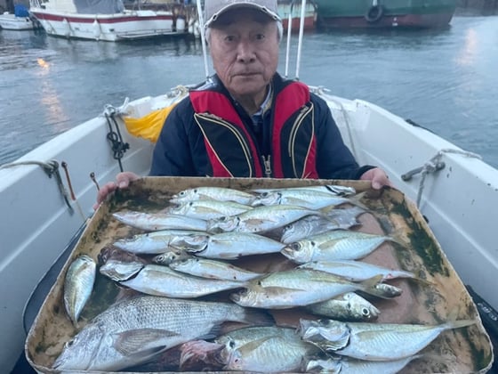 12月11日 ボート釣りで柏尾さん アジ25匹 ガラカブ5匹 カワハギ3匹 タイ、キス