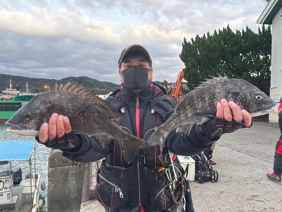 12月19日 磯釣りで野田さん チヌ40cmオーバーを頭に2匹