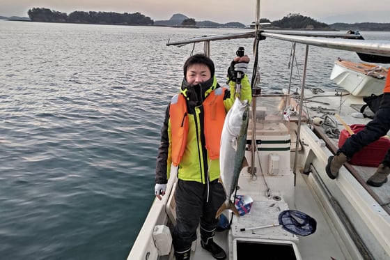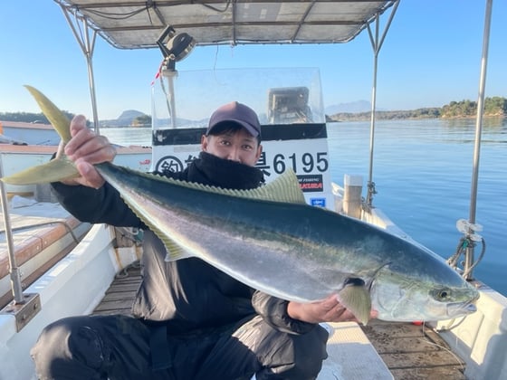 12月22日 船外機付きレンタルボートで福本さん ブリ76cm