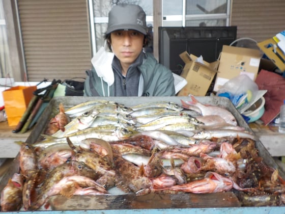 12月11日 ボート釣りで田崎さん ガラカブ50匹 アジ12匹 キス10匹 タイ3匹
