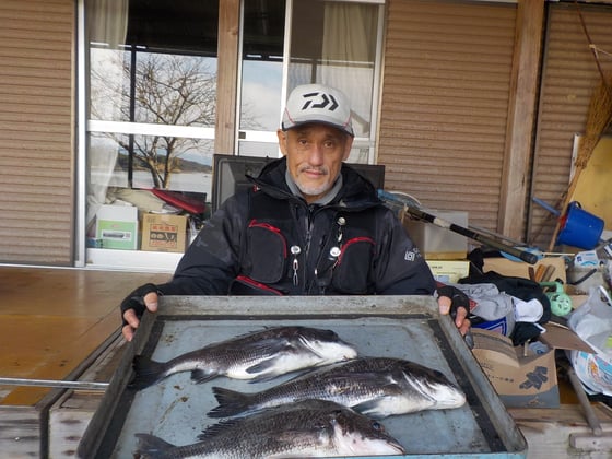 12月18日 磯釣りで江藤さん 良型チヌ45cmを頭に4匹