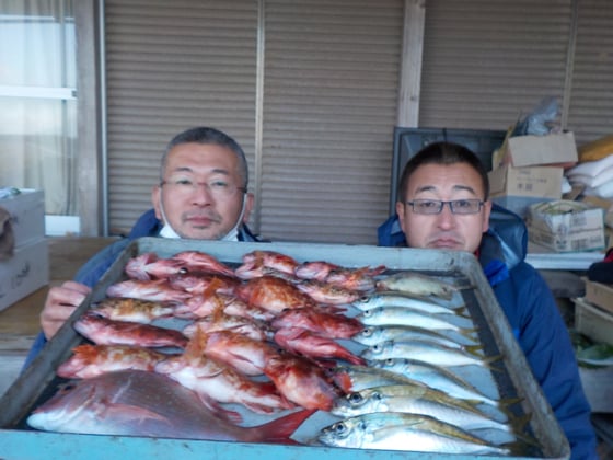 12月15日 ボート釣りで中原さん アジ50匹 ガラカブ
