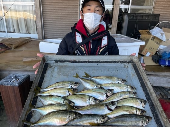 12月24日 磯釣りで松本さん アジ27cm前後を10匹 メバル1匹