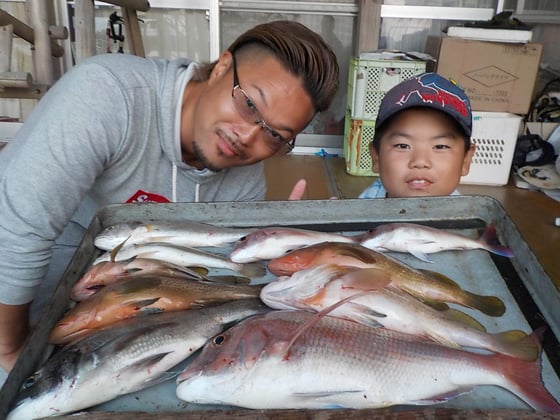 マダイ50㎝を頭に3匹 キジハタ4匹 チヌ1匹 グチ2匹