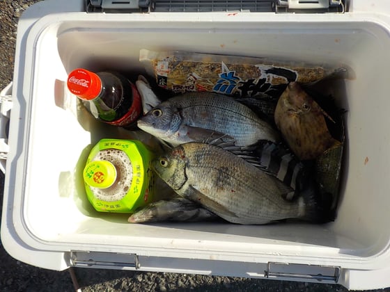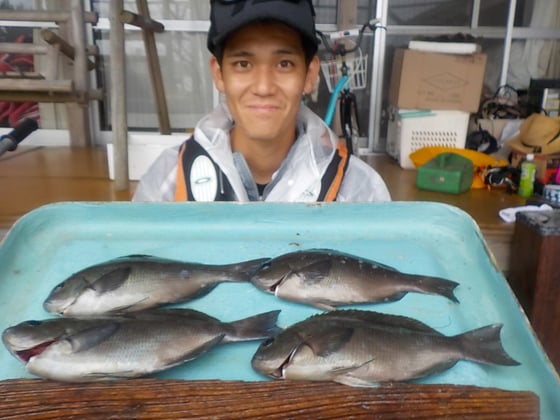 10月14日 ダゴチン釣りで大久保さん 良型チヌ45㎝を頭に4匹 シマアジ1匹