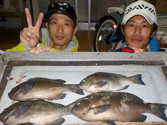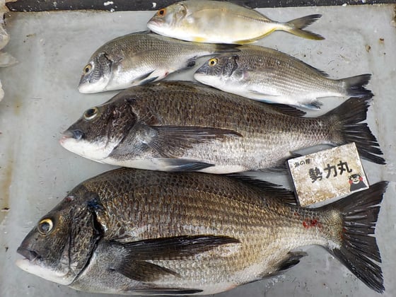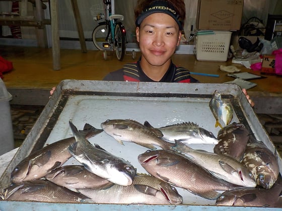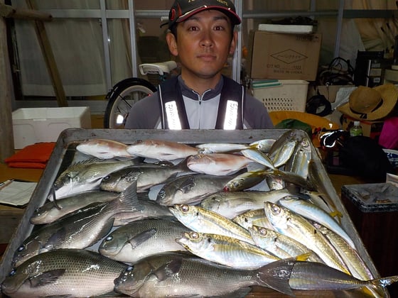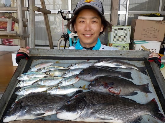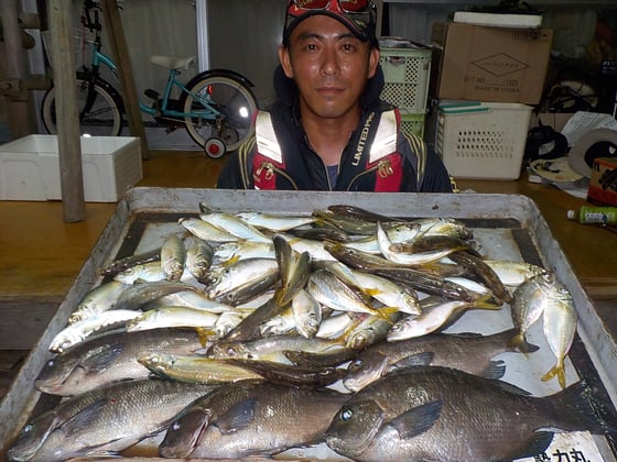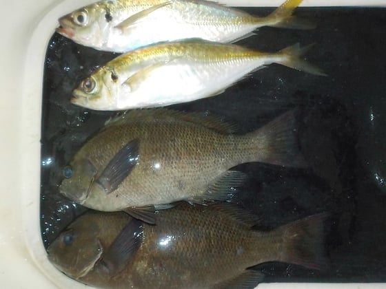 良型クロ30㎝オーバーを頭に8匹 アジ29㎝を頭に2桁 タイ3匹 メイタ1匹