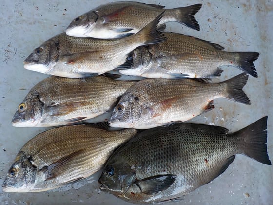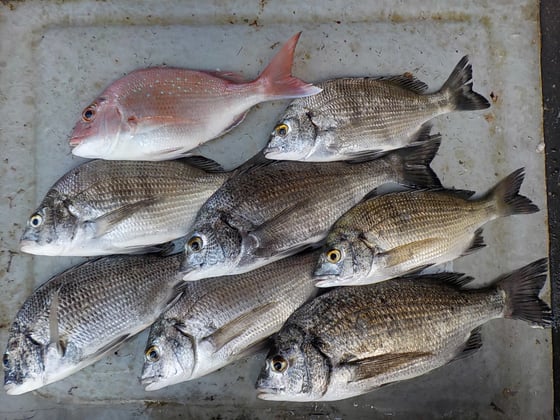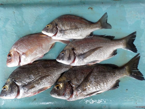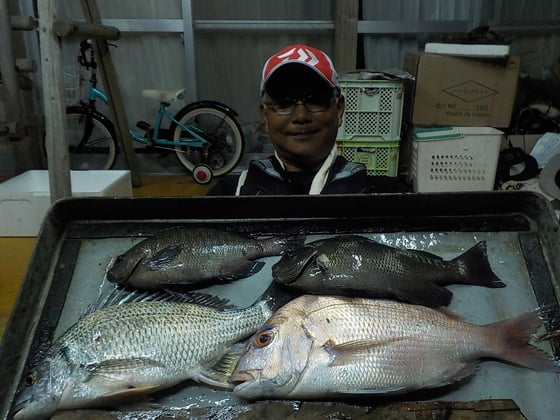 タイ46㎝を頭に4匹 マゴチ2匹 チヌ、ガラカブ