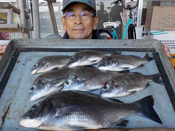 10月26日 ダゴチン釣りで大久保さん メイタ5匹 クロ3匹
