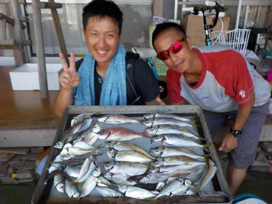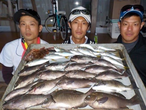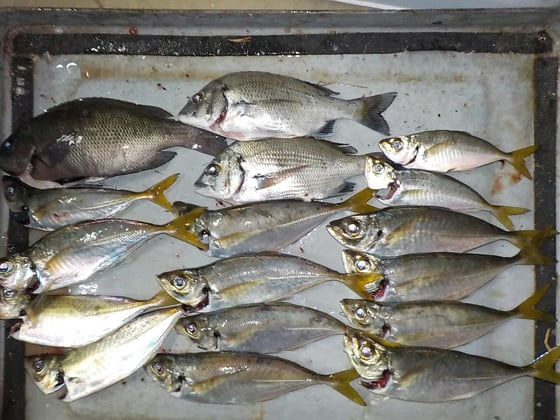 アジ25㎝オーバー9匹 アジゴ18㎝を頭に60匹 タイ2匹
