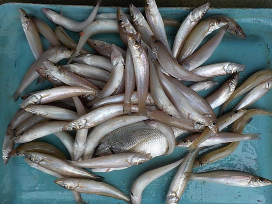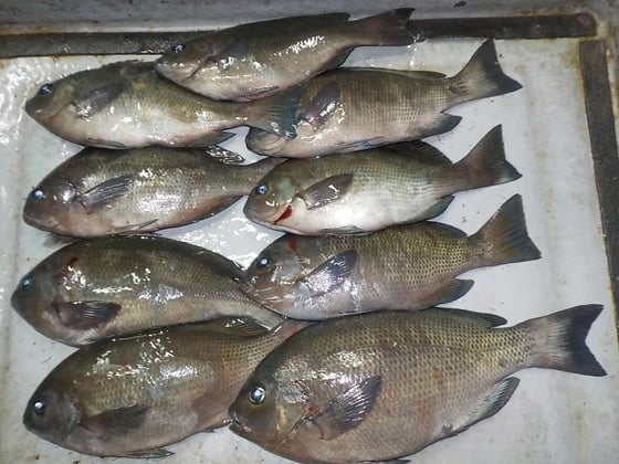 チヌ、メイタ5匹 クロ、サンバソウ1匹づつ アジゴ5匹