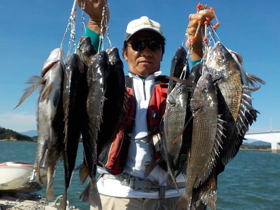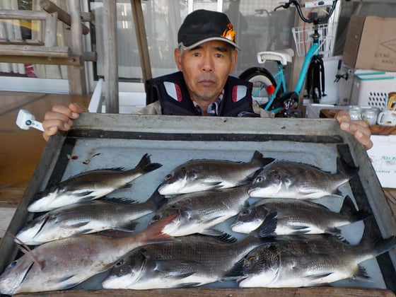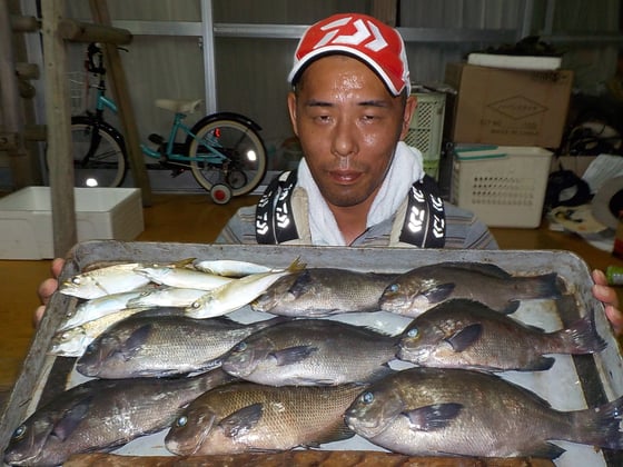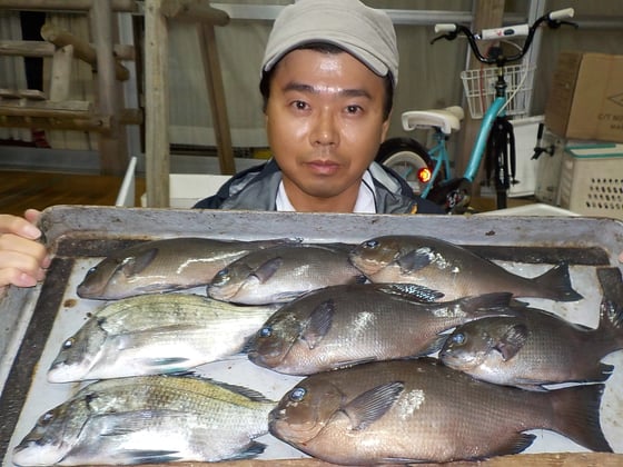 10月12日 ダゴチン釣りで岩根さん メイタ7匹 タイ1匹