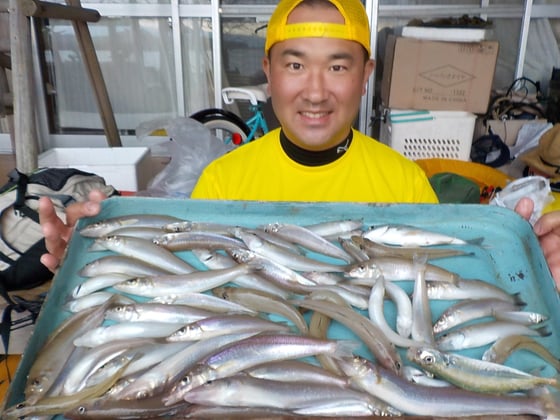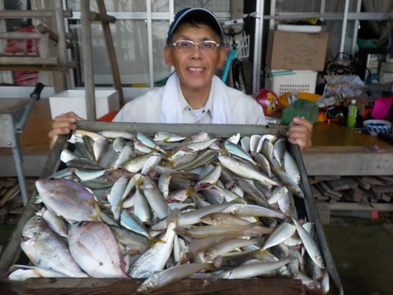 10月21日 サビキ釣りで陣内さん アジ30匹