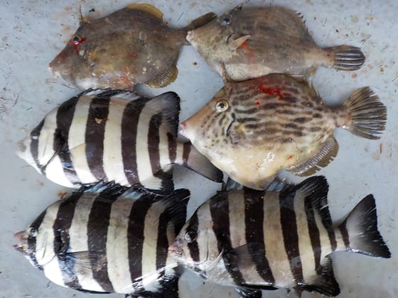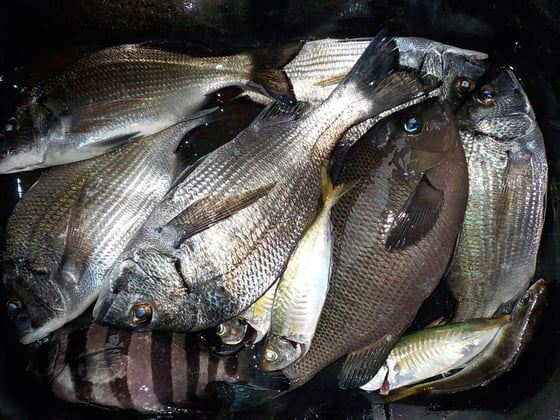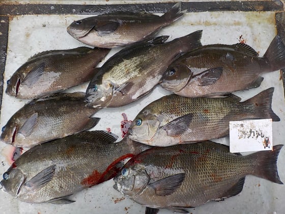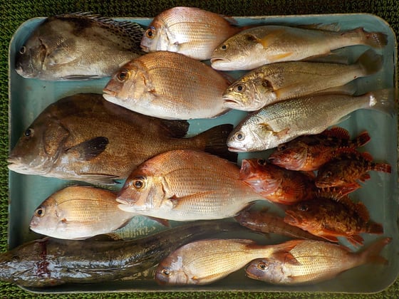 タイ6匹 コロダイ2匹 ガラカブ4匹 グチ3匹 コチ1匹