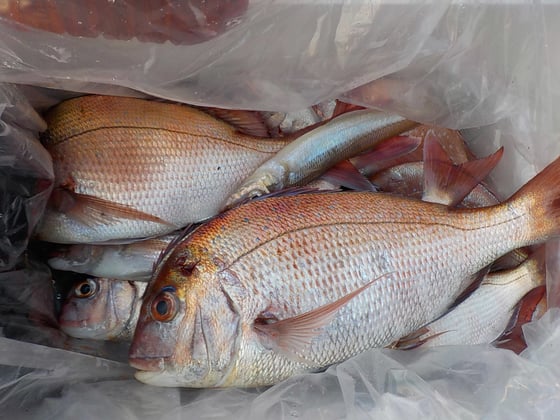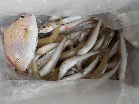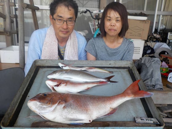 マダイ65㎝を頭に5匹 イカ2杯 ガラカブ、グチ、エソ
