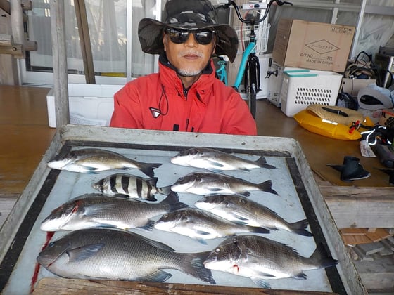 10月25日 ダゴチン釣りで吉本さん メイタ8匹 タイ1匹