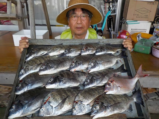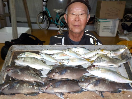 10月1日 ダゴチン釣りで内山さん チヌ、メイタ24匹