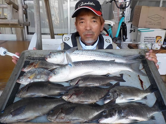 クロ30㎝を頭に5匹 メイタ2匹 ボラ2匹 ウミタナゴ2匹